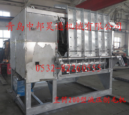優點:不銹鋼外殼,鍍鋅框架,10mm厚的國標材質;操作方便、省力;運作穩定,無振動感;打毛速度快,打毛率高,不受重量的限制;可兩三頭同時打毛,逐漸取代并超越了200型和300型液壓刨毛機的優勢。適合大中型屠宰廠(場)使用。